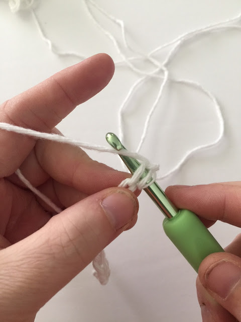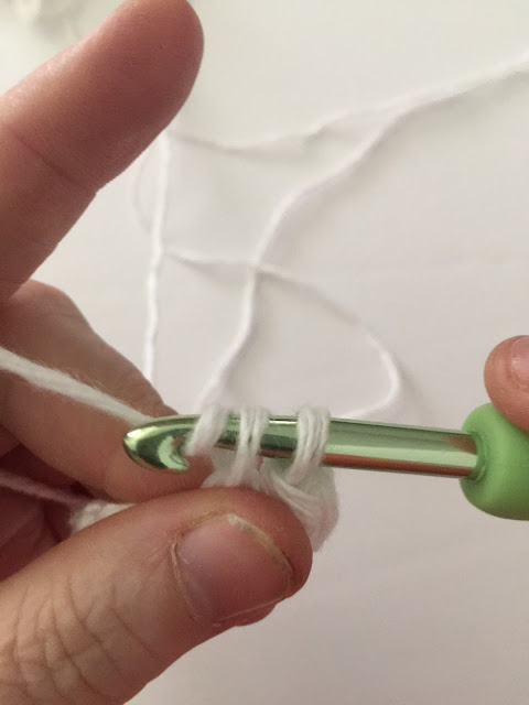 Now all you do is repeat all these steps into each successive chain stitch across your row. Insert your hook into the next chain stitch,
