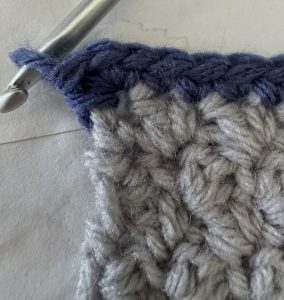 Working along the sides (row ends) is where it gets weird. Generally the spacing along the edges doesn’t work out to allow you to place one single crochet in each stitch like you did on the top row. So this is where you just go by feel.